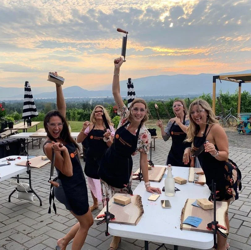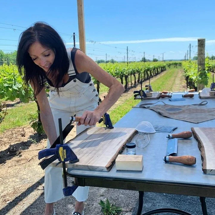 Sarah Lavigne is the Founder of Lavigne & Co Design which specializes in custom furniture and build outs for cafes, restaurants, breweries and commercial spaces. Teaching classes like this one was birthed out of enjoying wine and charcuterie with friends and family. Wanting to bring the full experience to others, she decided to hold a workshop experience with incredible backdrops like vineyards and breweries outside of a woodworking shop!