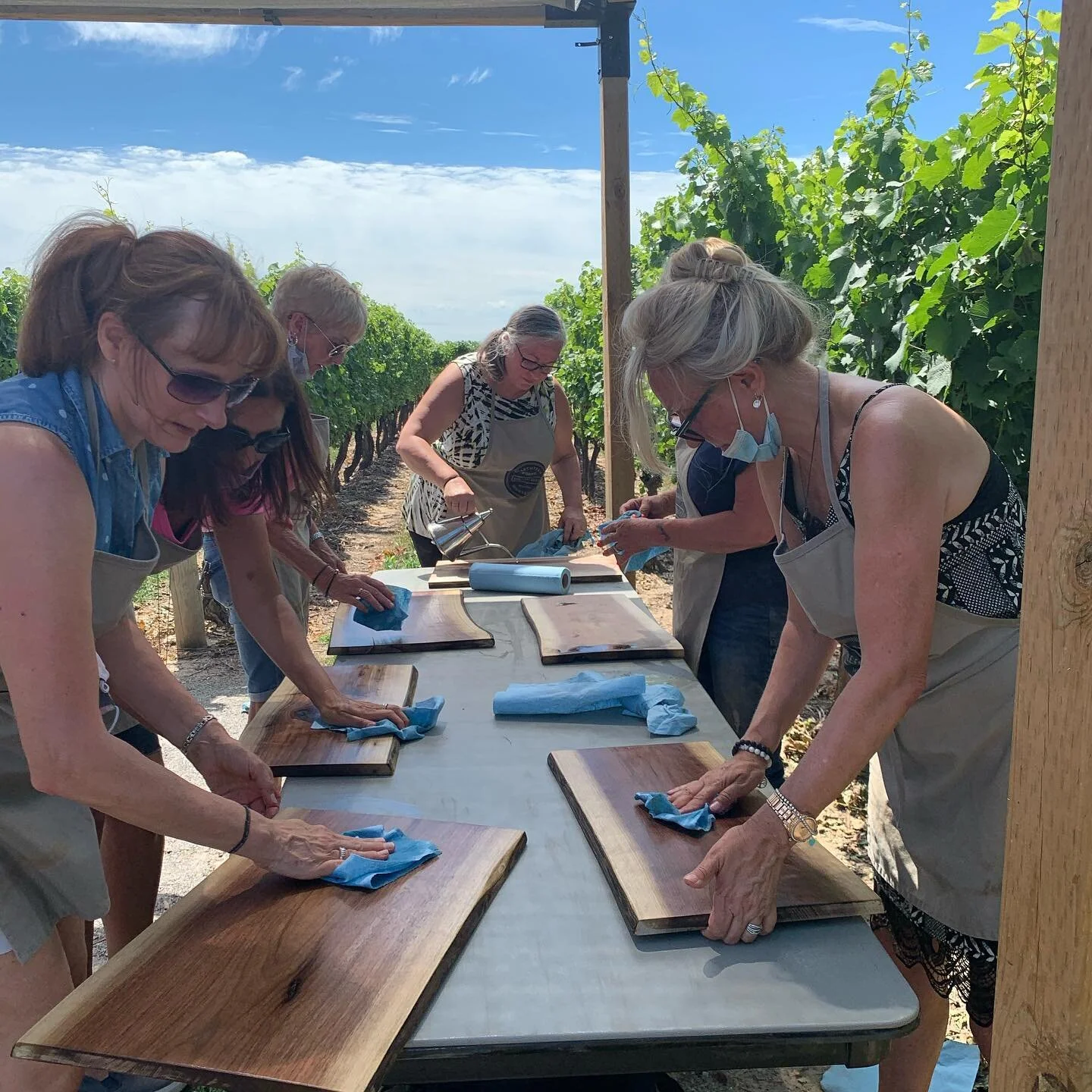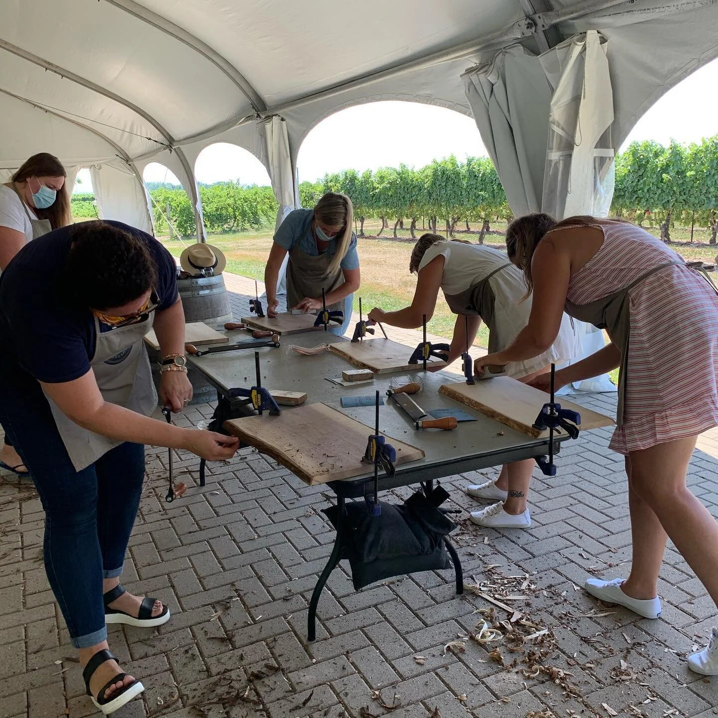 A unique experience with the industries pros. This workshop is a mix of a little class and a little dust. Start the experience off with some wine sampling (winery locations) or a beer/cider flight (brewery location) as you view the stunning NOTL vineyard or a fabulous Toronto local brewery. Next our stylist will teach you how to style a board with meats, cheeses, fruits, etc. which you get to then partake of all the delicious food. (Evening events only have styling and food). Finally move into the working area and learn some easy woodworking to build your board while you sip your drinks. You will acquire some introductory woodworking skills from Lavigne & Co Design’s pros as they walk you through de-barking, sanding and oiling your board. At the end of the class, you will leave with not only your charcuterie board but the story behind how you formed and built it with your very own hands!